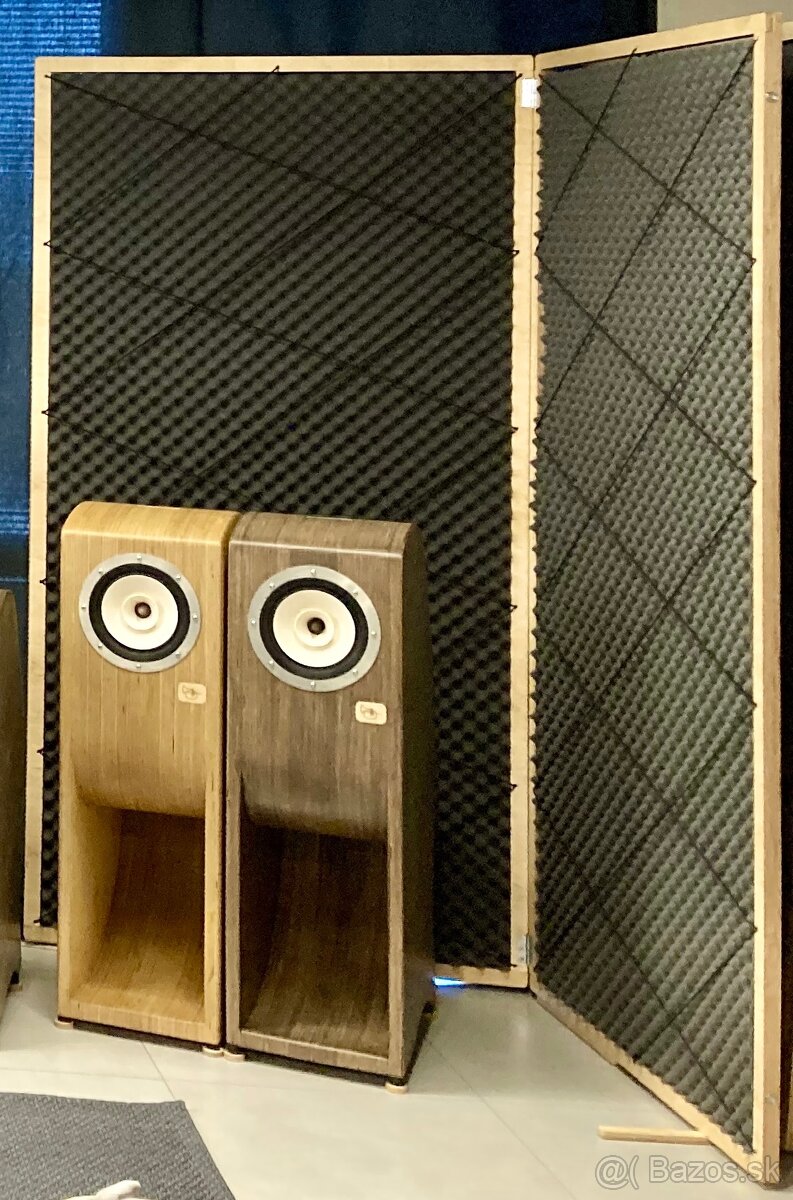 Predám kvalitné akustické steny 2x1m, samostatne stojace na výsuvných nohách, pevný drevený rám vyplnený akustickou penou sinus. Výborne eliminujú nežiadúce odrazy pri hudobnej produkcii, alebo sa dajú použiť na zlepšenie akustického komfortu pri mítingoch atd... V rámoch sú osadené magnety, za ich pomoci je možné paravany spojiť do súvislej priečky, alebo vytvoriť uzavretý obdĺžnik/štvorec/trojuholník. Spolu je ich 12ks - 24m2.
