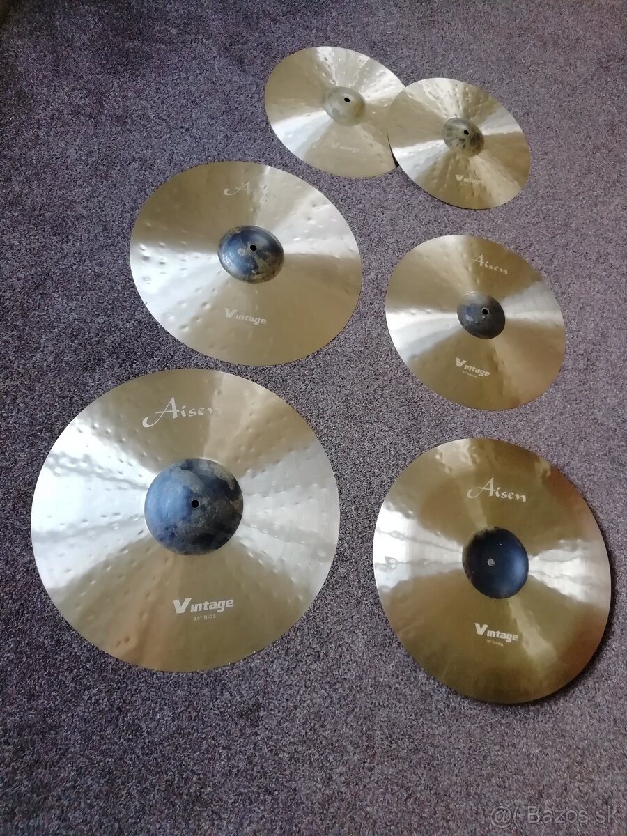 Nabízím Sadu Aisen Vintage. Profesionální činely ze slitiny B20 používané při výrobě nejvyšších řad činelů. Zvukem příbuzné Sabian HHX. Nádherný zvuk. Sada obsahuje 20"ride, 18 chinu 18"a 16" kreš, 14" hihat. Super cena