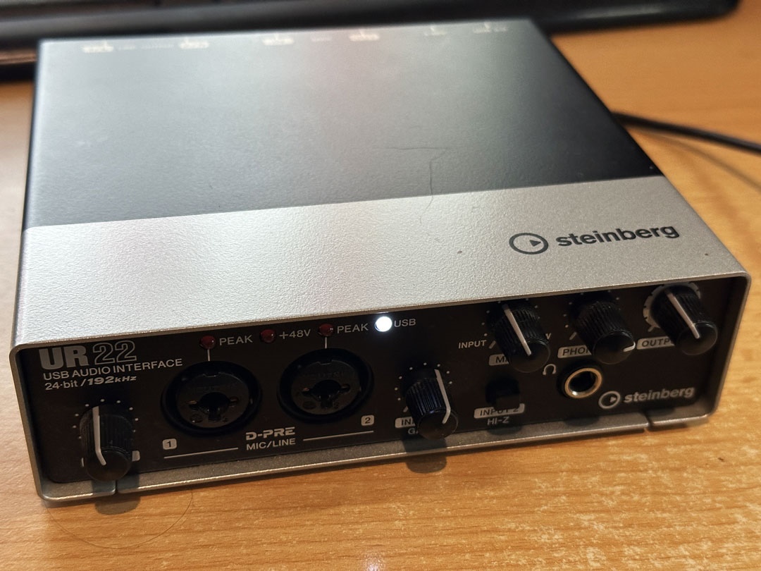 Kvalitná externá zvuková karta Steinberg UR22 (Yamaha). Pripojenie cez USB. 2x vstup na mikrofón, alebo nástroje/link. 24bit/192kHz. Phantom napájanie pre kondenzátorový mikrofón (+48V).