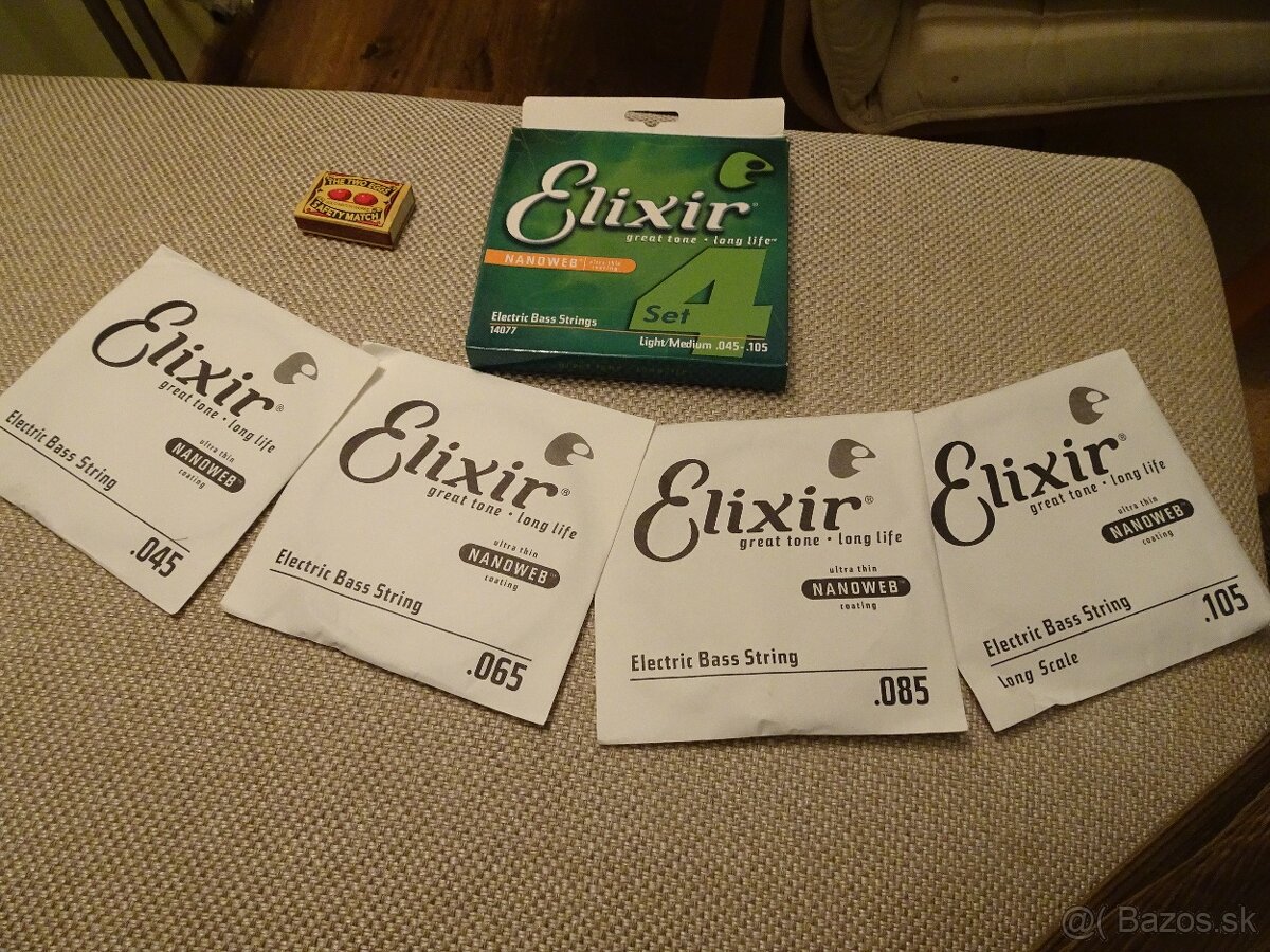 Predám tieto kvalitné struny na basgitaru ELIXÍR NANO WEB,Medium Light.NEPOUŽITÉ!Iba vybalené na potrebu fotenia.Stoja cca 60-,eur v obchode,moja cena 39-,eur.Mám dvoje preto tieto predávam aby zbytočne nestáli.Rozmery:0.45-0.105.Oficiálny popis z obchodu: