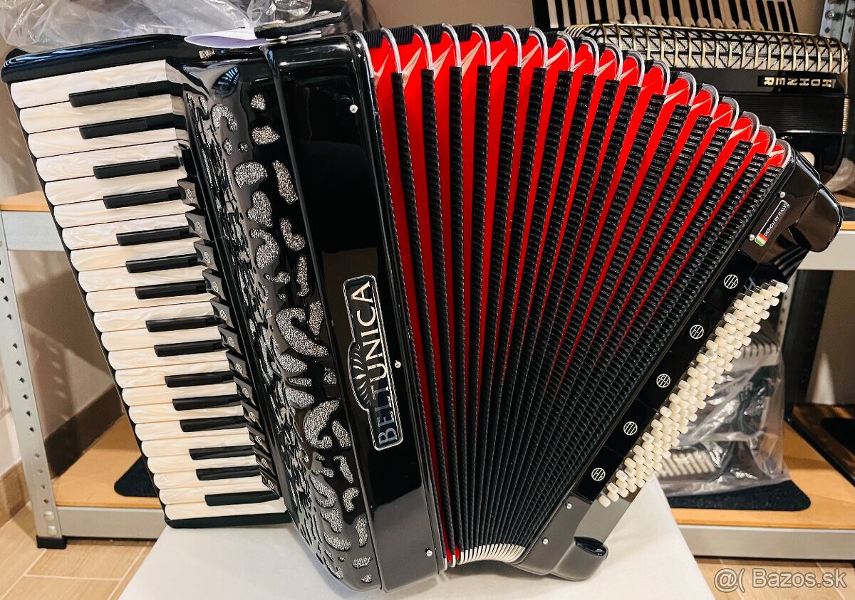 Nový akordeón Beltunica Proffesionall- IV- 96 basový- krásny