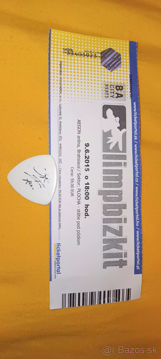 Predám pamätné trsátko Limp Bizkit Sam Riversa, chytené priamo od basgitaristu na koncerte v Bratislave 2015.