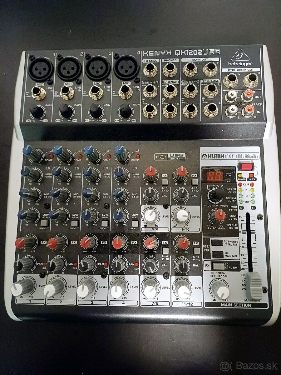Mixpult Behringer xenyx QX 1202USB.Prémiový mixážny pult s 12 vstupmi, zbernicou 2 a mikrofónovými predzosilňovačmi a kompresormi XENYX, britskými ekvalizérmi, 24-bitovým multi-efektovým procesorom a rozhraním USB / audio.