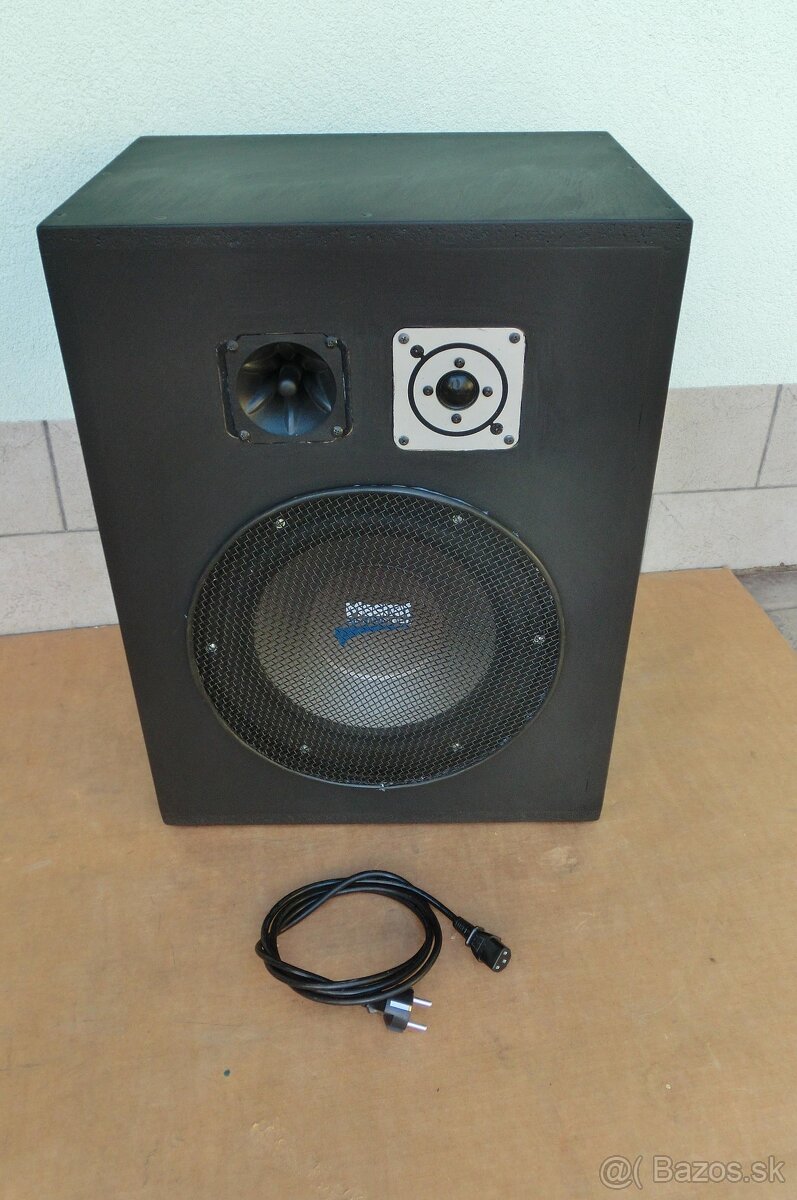 Predám doma robenú trojpásmovú drevenú reprobedňu. Rozmery reprobedne sú 60x45x33cm a je osadená reproduktorom Magnat Edition B30, stredovým a výškovým reproduktorom. Ako zosilovač je použitý blok Skitec SP1500ABT MP3. Skytec SP1500ABT je osvedčený aktívny reproduktor. Výhodou tohto reproduktora je integrované bluetooth rozhranie, ktoré umožňuje vytváranie prepojenia s bluetooth zariadeniami, ako sú smartphony či PC dongle, a následné prehrávanie hudby bez použitia akýchkoľvek káblov. Mikrofónový vstup a samostatná mikrofónová sekcia zas poslúžia pri ozvučovaní spevácky a prednáškovo zameraných podujatí, ako sú reklamné akcie, semináre čí karaoké párty. Okrem toho je Skytec SP1500ABT vybavený USB a SD vstupmi na priame prehrávanie hudby z USB kľúčov a SD kariet. Pomocou XLR linkového výstupu môžete zariadenie prepojiť s ďalším aktívnym reproduktorom. Vhodná do baru, alebo na domáce použitie na oslavy a aj silvestrovskú párty. Buď osobný odber aj s odskúšaním, ale je možné na trase Považská Bystrica - Bratislava po dohode aj doviesť. Poprosím kontaktovať cez formulár Bazoš, alebo na e-mail inzeratyja@gmail.com, prípadne telefonicky na 0905950410, na SMS neodpovedám. Za pochopenie ďakujem. Poprosím kontaktovať cez formulár Bazoš na e-mail, alebo telefonicky na 0905950410, na SMS neodpovedám. Za pochopenie ďakujem. Jozef