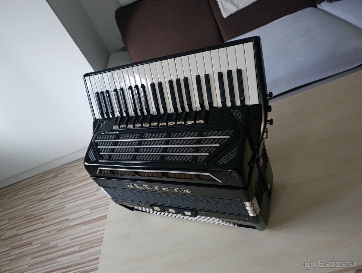 Predám veľmi pekný zachovalý koncertný nástroj Dineta de luxe, talianske hlasy, pravý manuál: 45 kláves, 11 registrov, 3 bradové registre (16,master, 8/4).