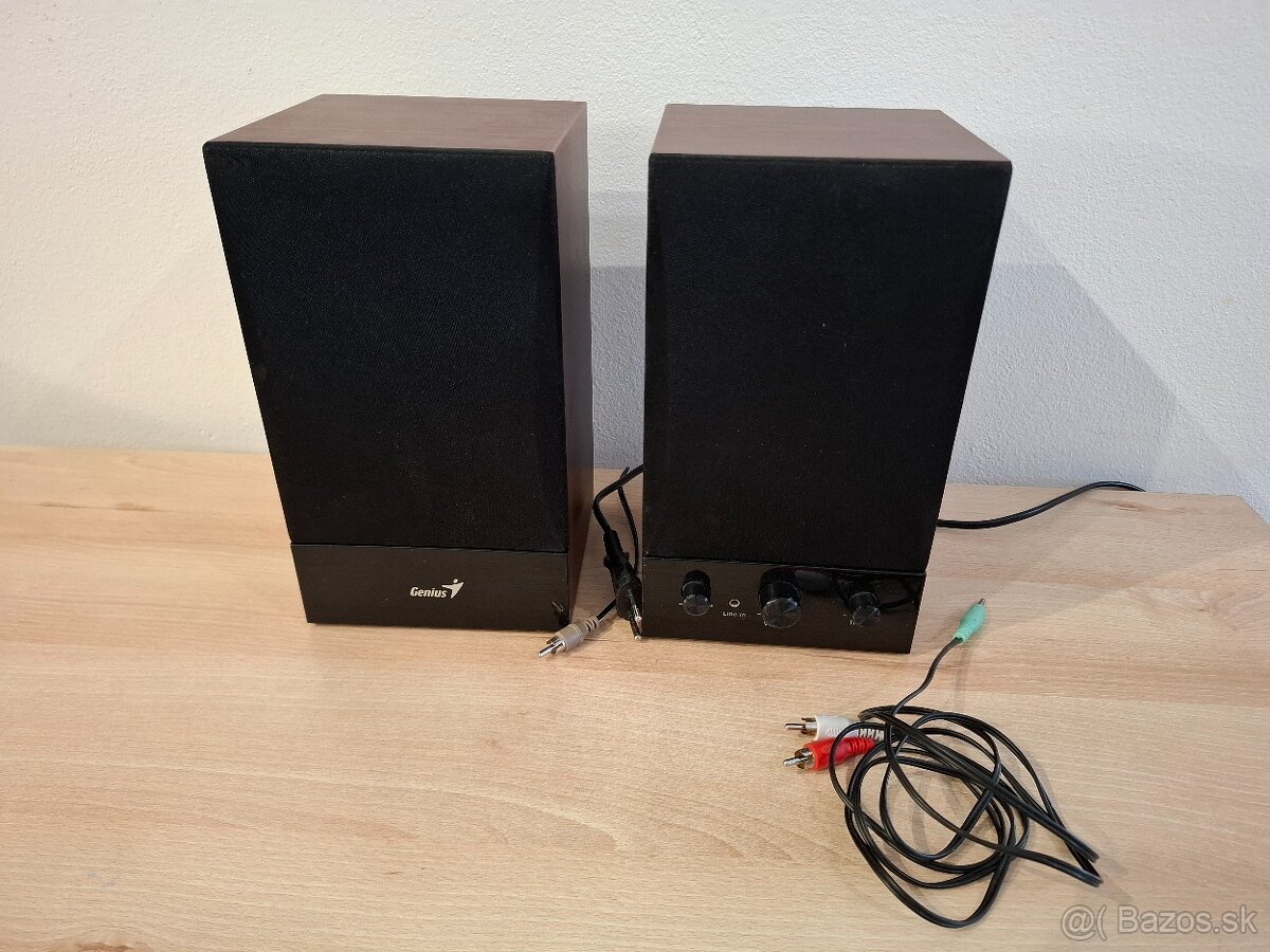 Ponúkam reproduktory GENIUS - aktívne 2.0, 2-pásmové, frekvenčný rozsah 70 Hz - 20 kHz, Impedancia 4 Ohm, citlivosť 70 dB.
