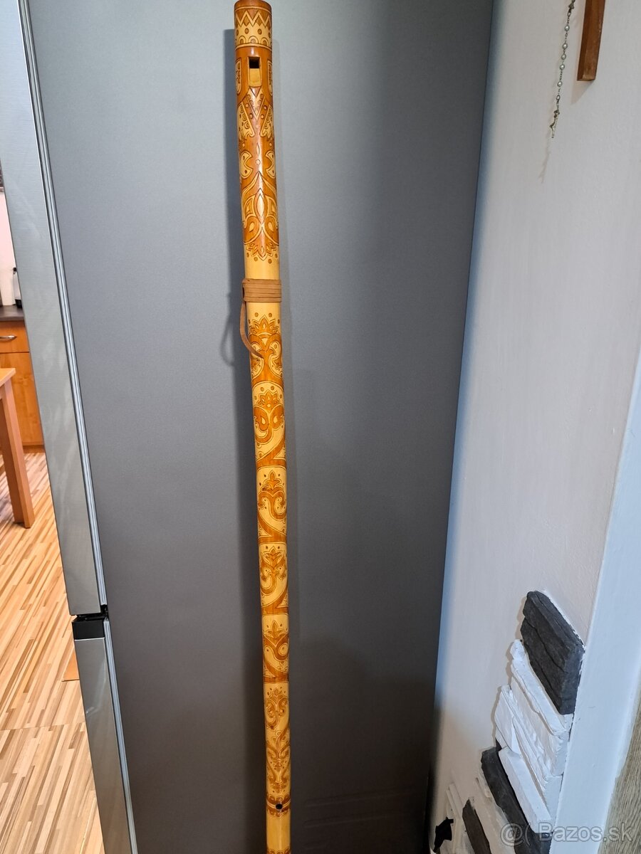 Predám fujaru ručne vyrezavanu z bazoveho dreva a kyselinou vypalovanou v svetlej farby v dĺžke 168cm ladenu v tonine Gis vymastenu lanovym olejom.Je to ručná práca a nová nie použitá.