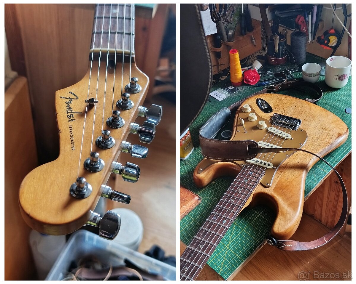 Fender USA Deluxe. Pôvodná čierna farba nahradená predchádzajúcim majiteľom nitrolakom a už má niečo povrch za sebou. Dorobené vynikajúce nerezové väčné pražce. Dokonalá prácička gitarára na hmatníku a pražcoch čo ťa prežijú.Snímače noiselles vymenené za overené klasiky Texas special.Treba si prísť zahrať a vyskúšať.