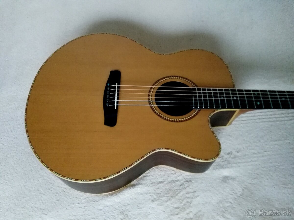 Predam ručne robenu celomasivnu gitaru Dowina Chardonnay JC /JUMBO/.Ma krasny silny vyvaženy zvuk a vyborne ladenie.Je vyrobena zakladatelom Dowiny majstrom Marinovom na zakazku v r.2007/ na vnutornom rebre signovana SPM /, na svoj vek je zachovala s malými znamkami použivania od bežneho hrania.Pred rokom bola u gitara prepražcovana a zoštelovana, od vtedy minimalne hrana.