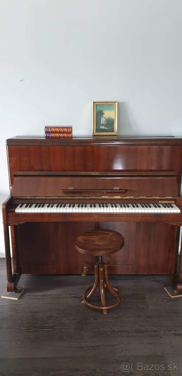 Predam zachovaly plne funkcny klavir zn. August Forster, velmi dobry stav. Farba lesteny mahagon. Posledne roky malo pouzivany, je potrebne ho naladit.