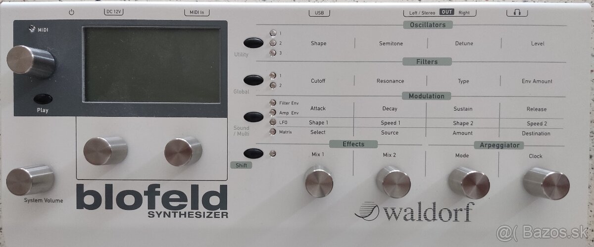 Waldorf Streichfett string syntetizator - [10.3. 2026]Polyfonický modul, ktorý v sebe spája zvuky strunových syntetizátorov zo 70-tych a 80-tych rokov. Je vybavený dvomi zvukovými enginmi a zabudovanou efektovou sekciou.