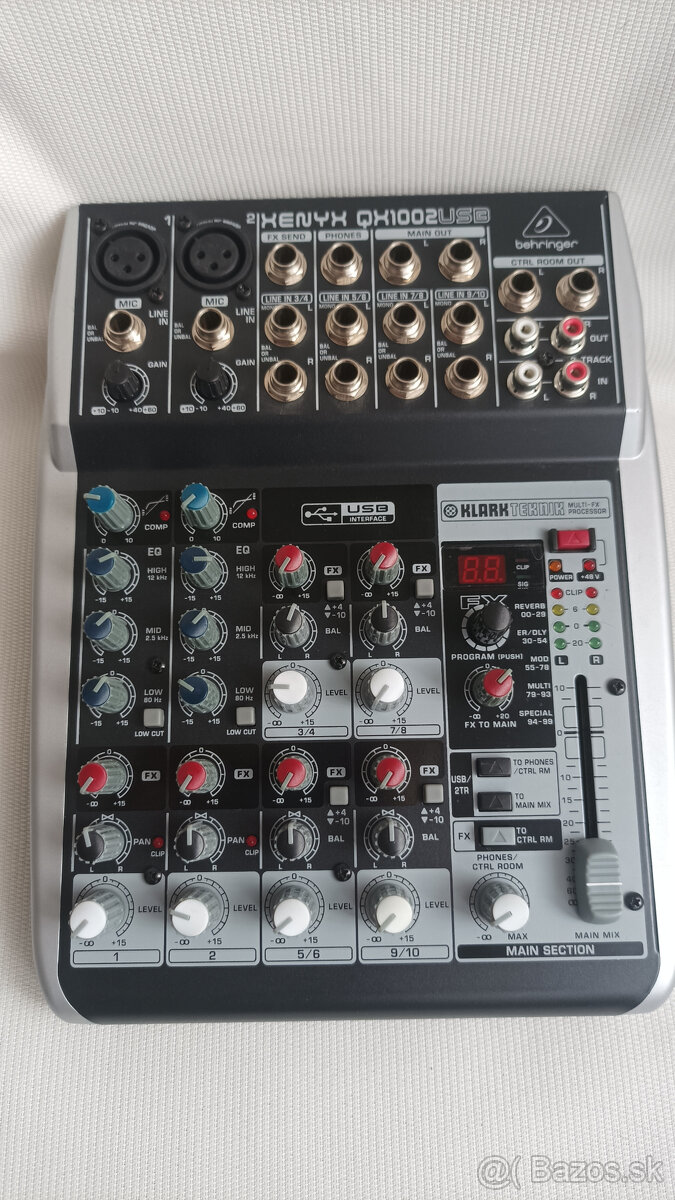 Predám mixážny pult Behringer XENYX QX1002USB. Plne funkčný, ako novy, technický aj vizuálny stav. Používaný len parkrat v domácom štúdiu.