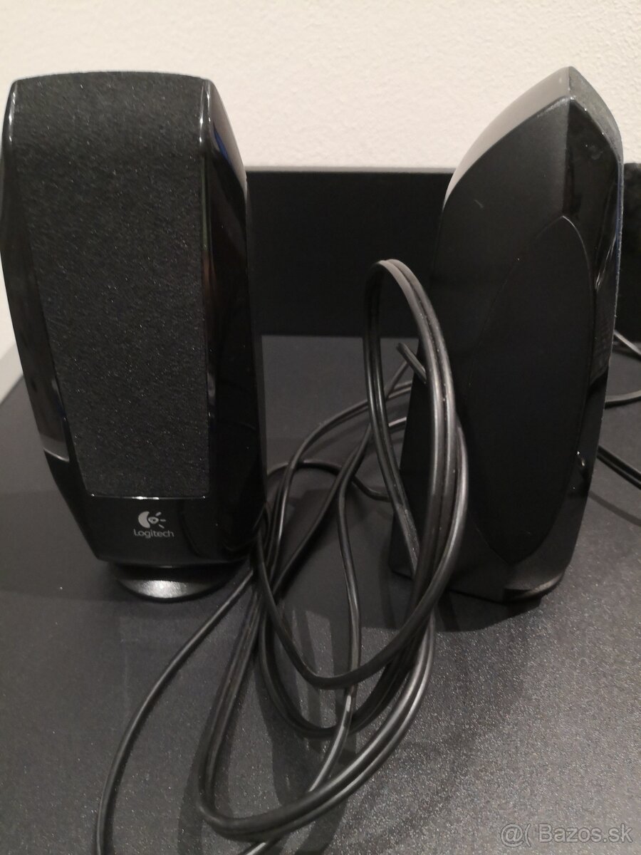 Predám 2 ks káblový reproduktor Logitech k PC/notebooku, čierne, s koncovkou na kolík.