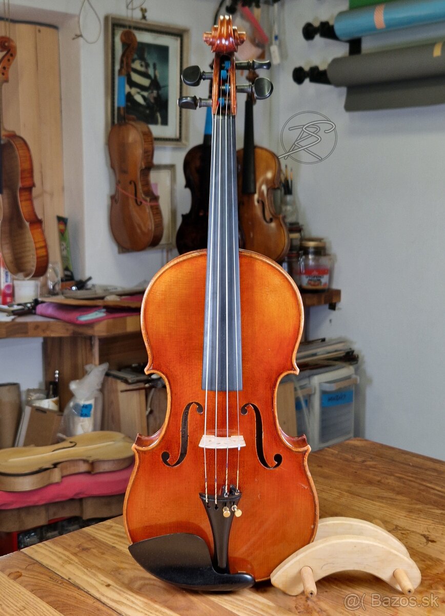 Ponúkam do dobrých rúk nemecký nástoj, model Stradivarius, v skvelej forme. Ebenová garnitúra, francúzska kobylka Superieur Despiau, struny Larsen Tzigane. Vhodný pre sólového hráča, či nadaného študenta. Veľmi silný otvorený tón. Skvelý koncertný nástroj.