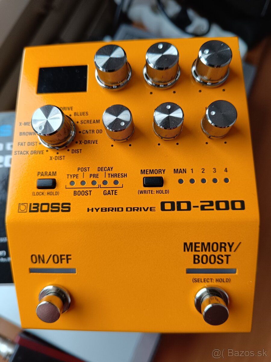 Predám BOSS OD hybrid drive OD 200. Zaujímavé kovové skreslovadlo s obrovskou škálou možností overdrive a distortion zvukov. Má 12 režimov, hybridný analógový/digitálny obvod, trojpásmový ekvalizér. Podpora MIDI. Všetko funguje bez najmenších problémov. Originál balenie/neobsahuje adaptér/, český manuál v PDF formáte. Jemné škrabance na bočných stranách-viď foto /nemá vliv na funkci/.