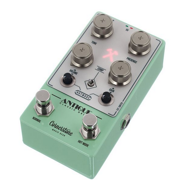"Ide o dvojkanálový overdrive v štýle TS, kde sú štandardné možnosti nastavenia známe z pôvodného Cornerstone Antique (Normal Mode - Tone, Presence, Volume, Gain, prepínateľná kompresia) rozšírené o samostatne prepínateľný Hot Mode s dvoma boostrami pred a za OD sekciou. Booster a prípadne prepínač predzosilnenia/posilnenia po OD je k dispozícii na mnohých pedálových efektoch, Antique V3 však ponúka pred OD zosilnenie a po OD zosilnenie hlasitosti so samostatným ovládaním. Ak sme v prípade pôvodného modelu Antique hovorili o flexibilite, tu to platí dvojnásobne - služby krabičky ocenia nielen hráči klasického rocku a bluesu, ale aj iných, celkom odlišných štýlov."