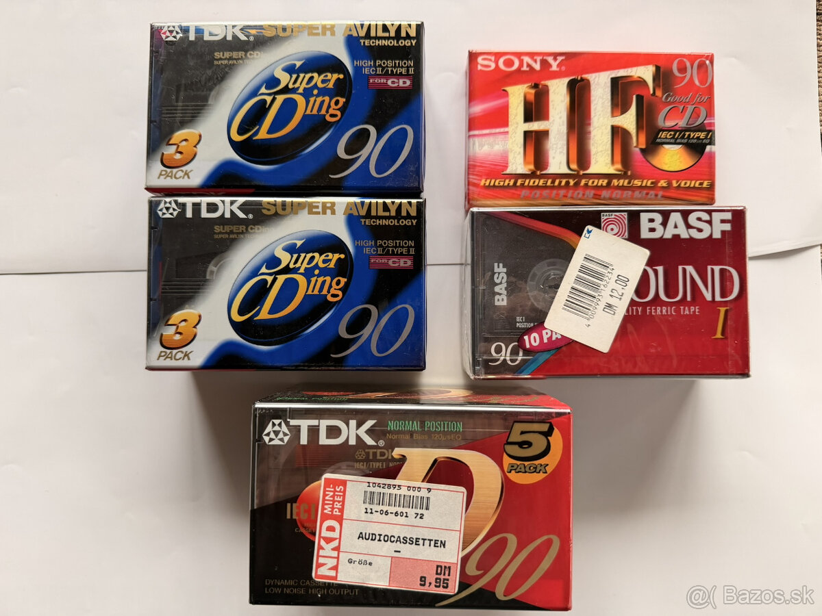 Predám úplne nové, ešte celofánované kazety, niektoré ešte majú cenovky v nemeckých markách. Posledné kusy: 3 ks BASF 90 SOUND I. (8 eur kus), 1 ks SONY 90 HF (8 eur kus), 5 ks TDK D 90 (8 eur kus) a 6 ks TDK 90 SUPER CDing II (10 eur kus). Cena za komplet 125 eur + poštovné.