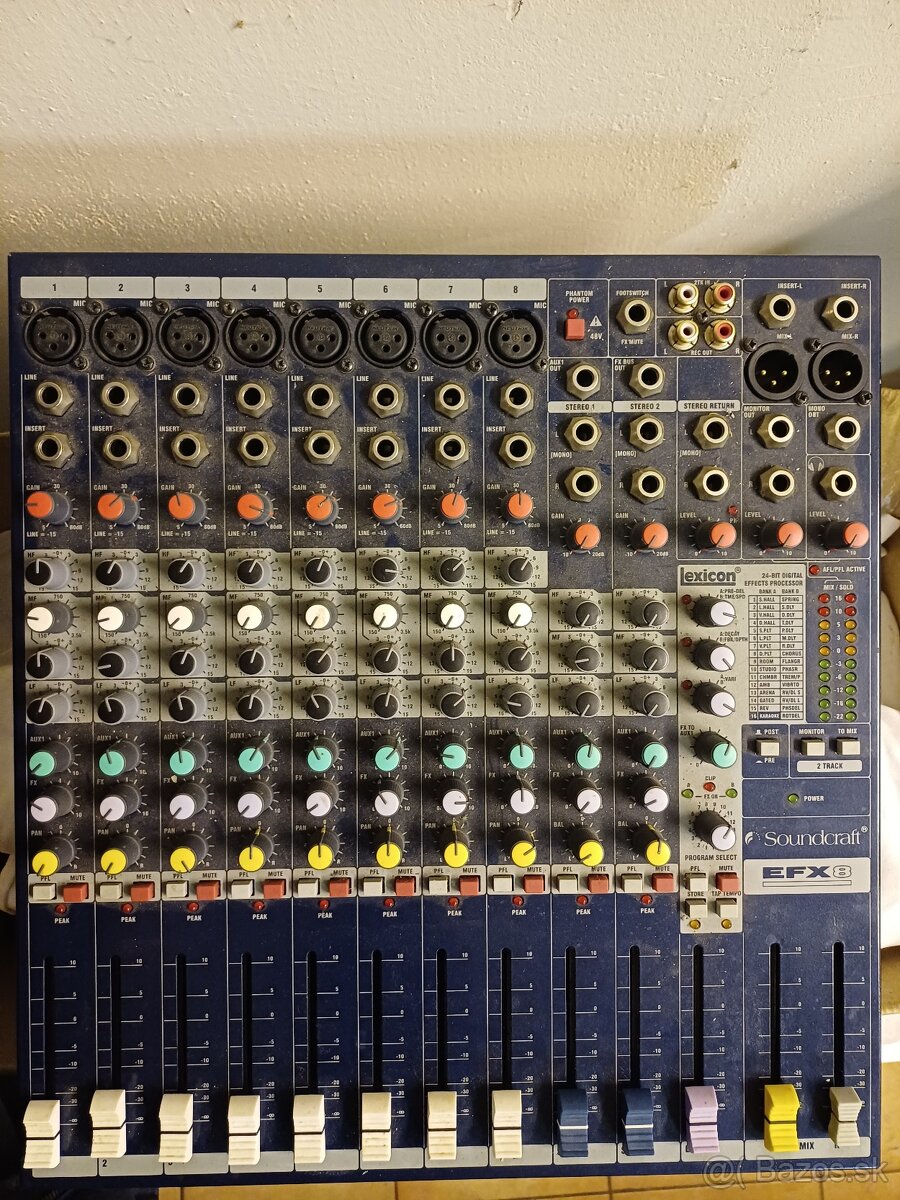 Predám mixpult EFX-8.treba opraviť 2 tiahlové potenciometre. Inak ostatné funguje v pohode. Ma slušné korekcie + hall+ efekt. Cena 180 eur. Cena v obchode 420e.