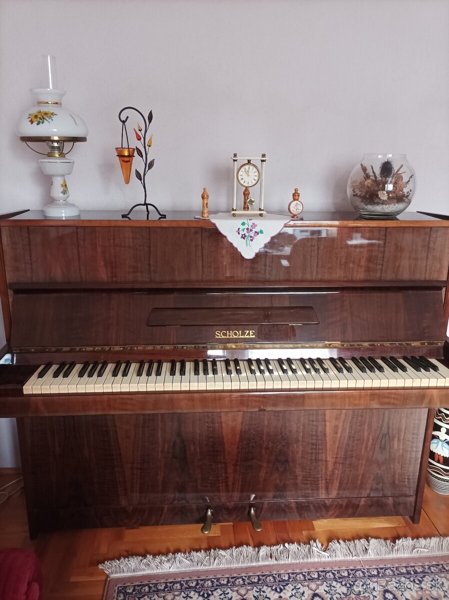 Predám zachovalé piáno Scholze, rok výroby 1970, vysoko leštený orech. Treba ho naladiť. Odvoz je potrebné zabezpečiť - prípadne viem poradiť. Original otočná stolička zdarma.