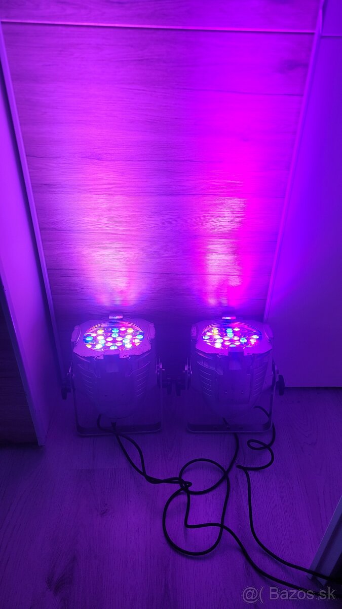 Predam 2x led par o vykone 100w. Cena spolu za 2 kusy je 50€ (25€/ks). Dmx, Sound auto mode.