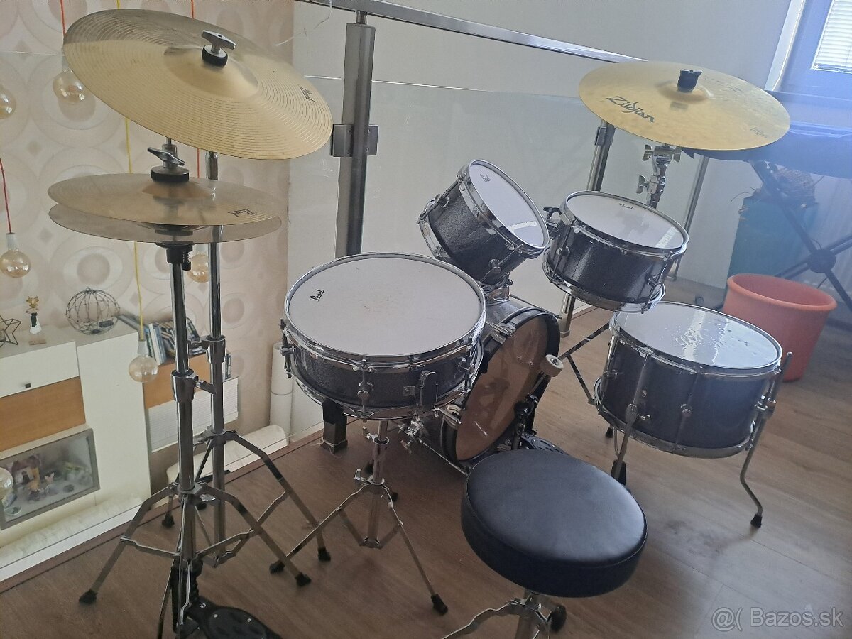 Predám komplet biciu súpravu PEARL RS Roadshow Jr. Súprava je určená pre deti a začínajúcich budeníkov. Sada je založená na úspešnej sérii Pearl Roadshow pre dospelých, ale je prispôsobená veľkosťou. V súprave je veľký a malý bubon, dva tom tomy, floor tom, kompletný hardware a činely (pôvodná cena bola 440 Eur) + pridávam dokúpenú činelu Zildjian ZP18CR Planet Z 18" Crash-Ride (pôvodná cena 110 Eur).