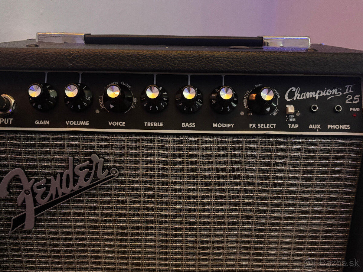 Predám Fender Champion II 25W kombo zosilňovač – ideálny pre gitaristov, ktorí chcú všestranný amp na cvičenie, jamovanie alebo menšie hrania. Je len asi rok používaný, bez chybičky, plne funkčný a vyzerá super.