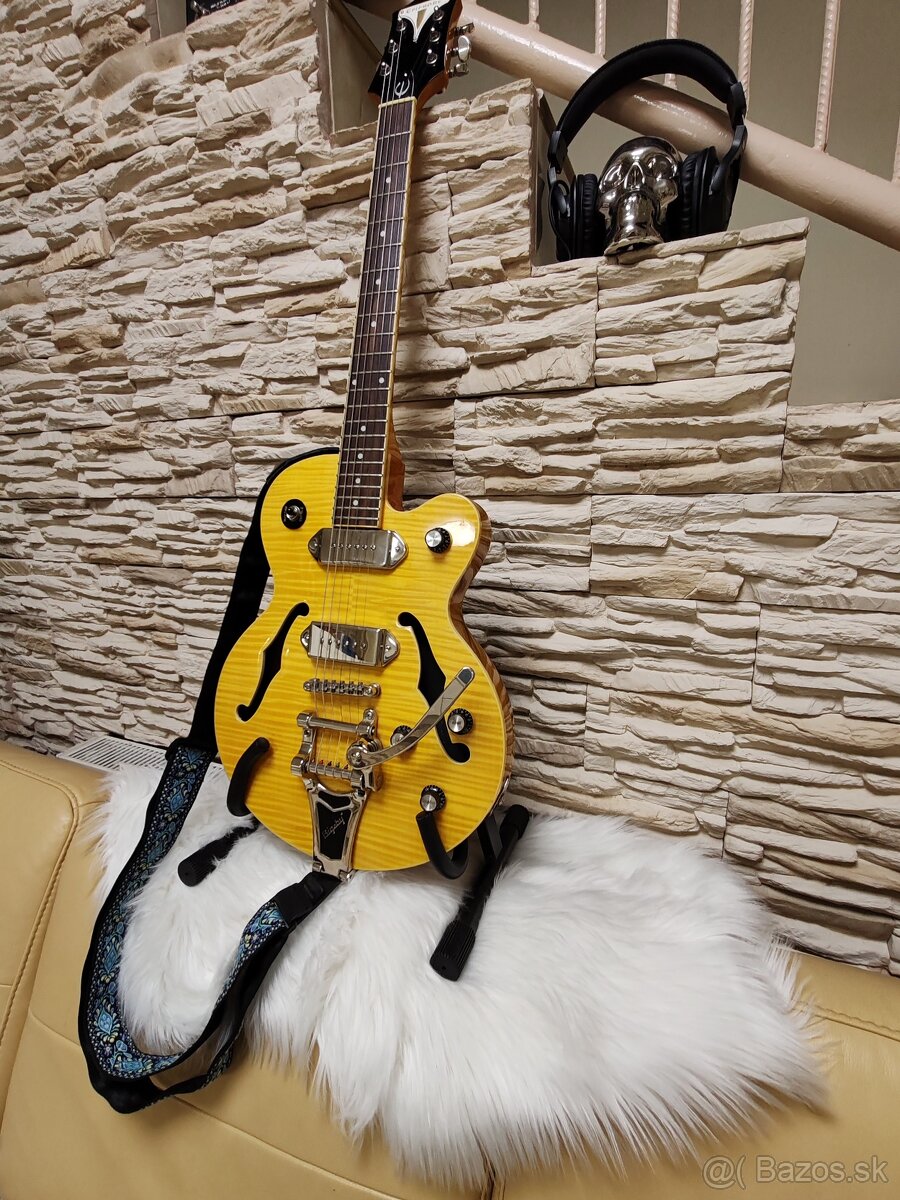 EPIPHONE WILDKAT semiakusticka krásna elektrická gitara. Stav ako nová! Vhodná ja jazz, blues aj rockabily.. séria aleykat, vrchná doska fladrovany javor, zadná mahagón. Javorový krk.