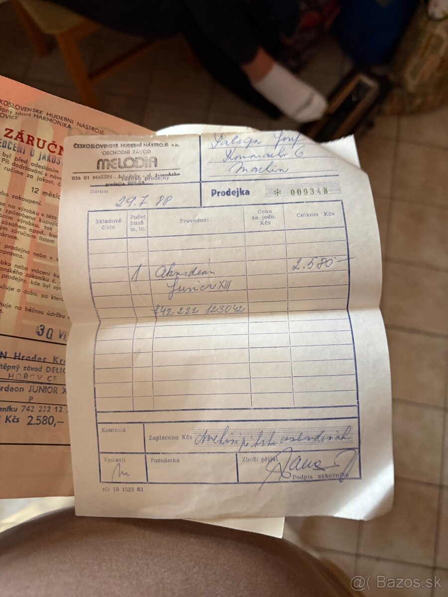 Predam akordeón z roku 1988 so zaručnym listom plne funkčný ako nový cena ponúknite