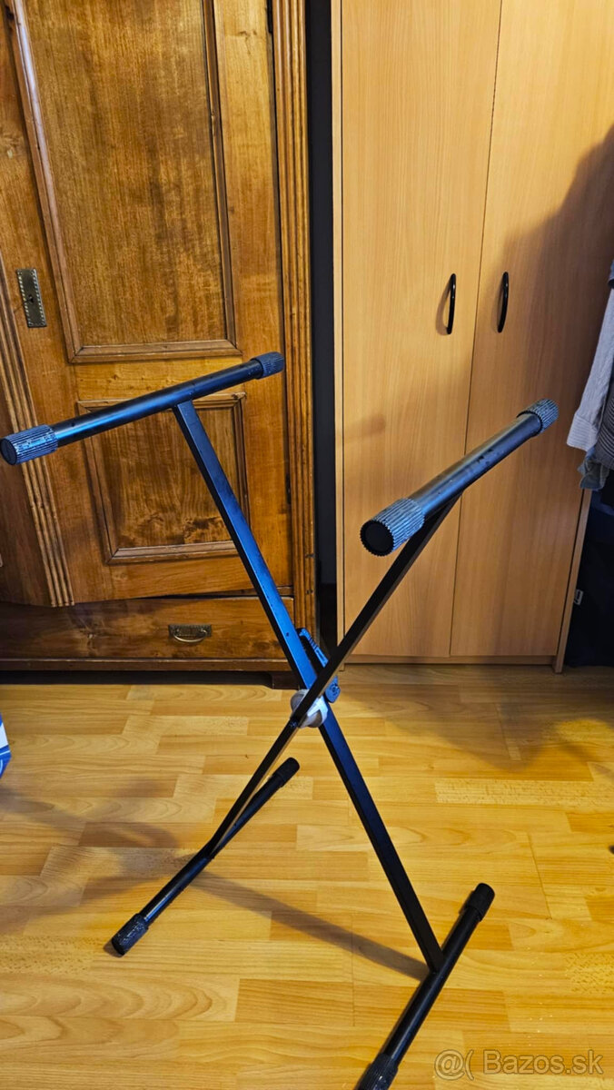 Pevný oceľový stojan na klávesnicu s jednoduchým sedemstupňovým systémom nastavenia výšky. Pogumované konce konštrukcie zabezpečujú celkovú stabilitu a ochranu pred poškriabaním. Stojan je vhodný pre všetky typy klávesov.