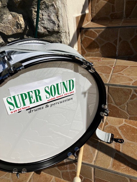 s remeňom a búchačkou. Veľká búchačka je extra. Priemer 16". Ďalekosiahly zvuk na štadióne.