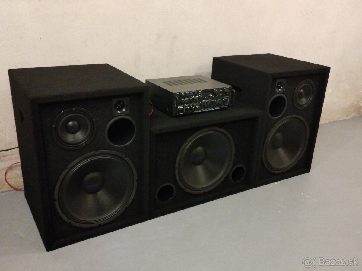 Predám túto audio zostavu. 2xTrojpasmove reprobedne 12 palcov 200w, subwoofer, zosilovač s podporou Bluetooth, digitalnim FM rádiom, dva zadné vstúpi, USB a čítačkou kariet, 4 vstúpi na mikrofón, diaľkovým ovládaním. Zosilňovač je možnosť pripojiť na 12v a použiť v aute.