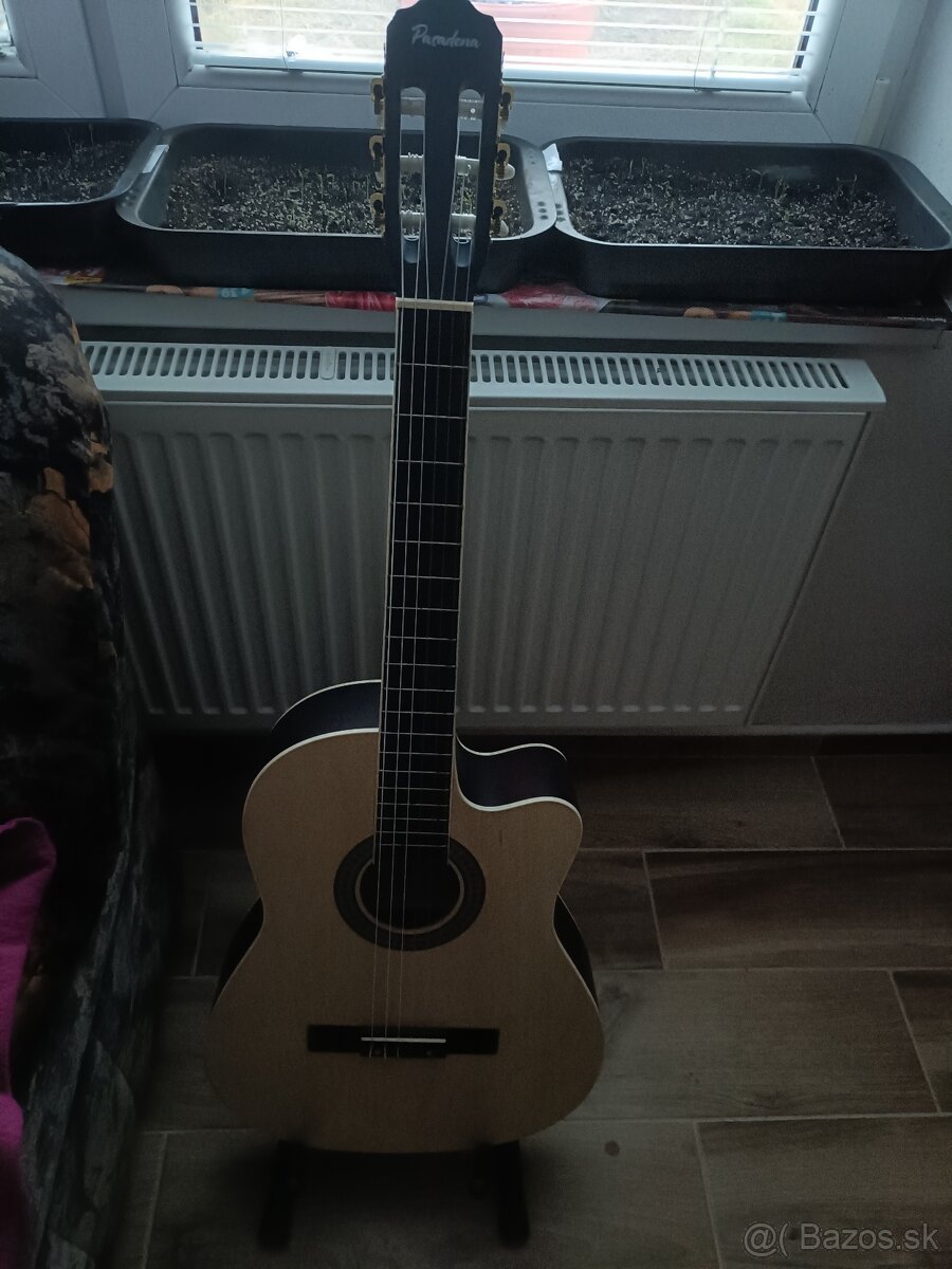 Predám čisto nový gitarový sed ladička ,gytara Pasadena akustická, puzdro na gytaru, podložka na gytaru a stojan na gytaru plus kniha grátis za 120€