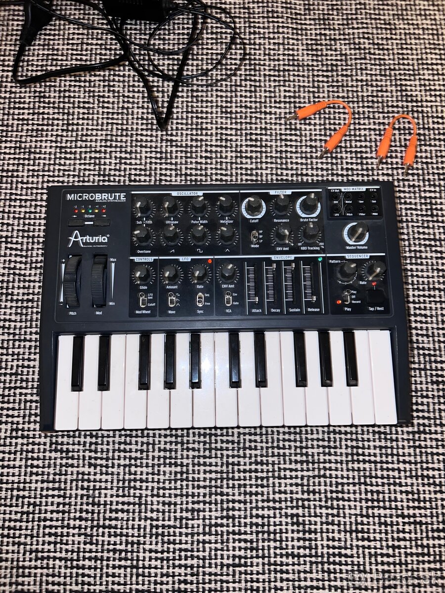 predám analógový monofonický syntezátor Arturia Microbrute. Je v používanom, no plne funkčnom stave. Plastové kryty potenciometrov bohužiaľ s vekom zlepkaveli, čiže sa na ne lepí prach, ale neovplyvňuje to funkčnost. Obsahuje sekvencér a miniatúrny patch-panel. Dá sa tiež použiť ako USB MIDI ovládač. Mám k nemu aj pôvodnú krabicu. Predávam z dôvodu nevyužitia.