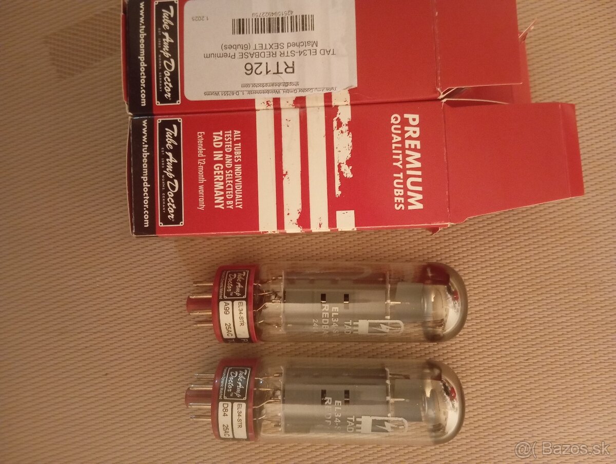 Predám spárované lampy TAD EL34-Redbase.Nove 100% stav.
