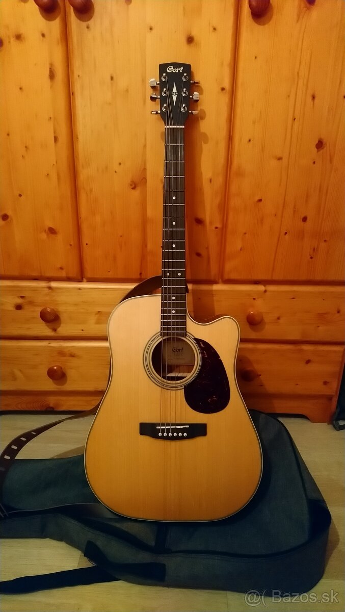 Predám takmer nepoužívanú elektroakustickú gitaru Cort MR600F NS i s obalom Tanglewood AG BG, Levy's hnedým koženým pásom a ladičkou.