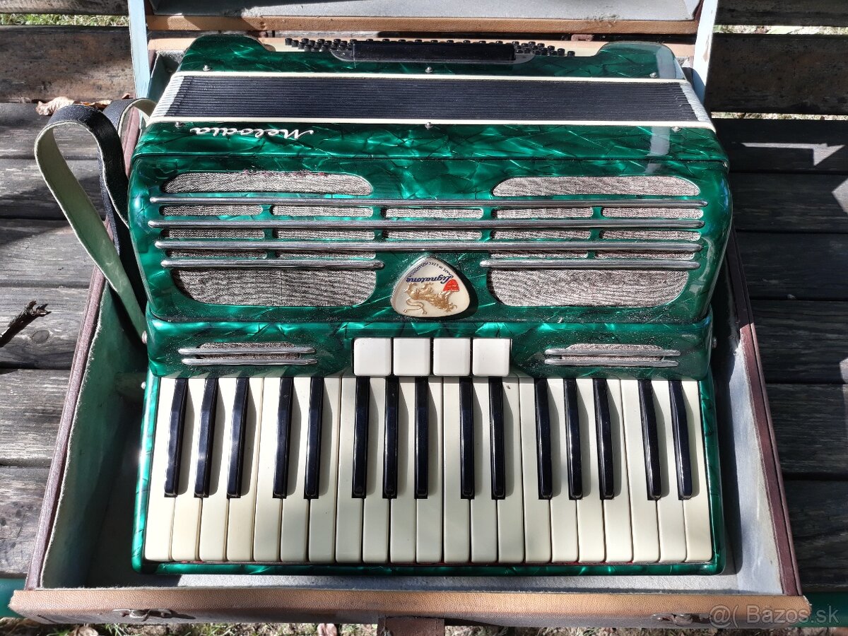 Predám akordeón Melodia 80 basový v stopercentnom stave vrátane originálneho kufra.
