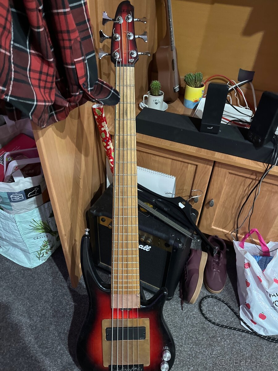 Predávam 6-strunovú basicku KGB (Kamil Greben Basses), je v dobrom stave (sú viditeľne známky používania), ale napriek tomu hučí, a hra sa na všetky 100%. Hrana len doma, a k tomu pridávam kufor, a náhradné Strunky Dadario. Takže ona vybavená jedným EMG pasívnym hambacherom, a pod DIY pickguardom je miesto pre jeden podobný snímač. V prípade zaujemu poprosím kontaktovať mailom, lebo správou, a pri potrebe môžem poslať aj viac foto. Preferujem osobny odbor, ale môžem poslať dobierkou. Mozna výmena na nejakú elektrickú gitaru (ideálne Squier Classic Vibe Jazzmaster, Jaguár, Mustang), a dohoda.