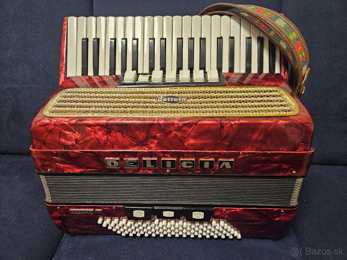 Predám akordeón zn.Delicia 96basov. Vo veľmi dobrom stave ladi ,tesní , 3hlasná