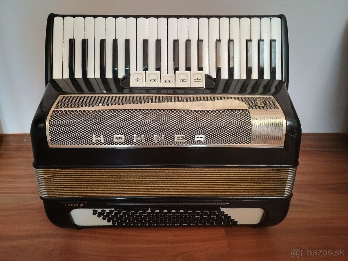 Predám kvalitný akordeón Hohner Lucia III krásny akordeón tesni ladí výborný hlas len hrať pošlem aj na dobierku