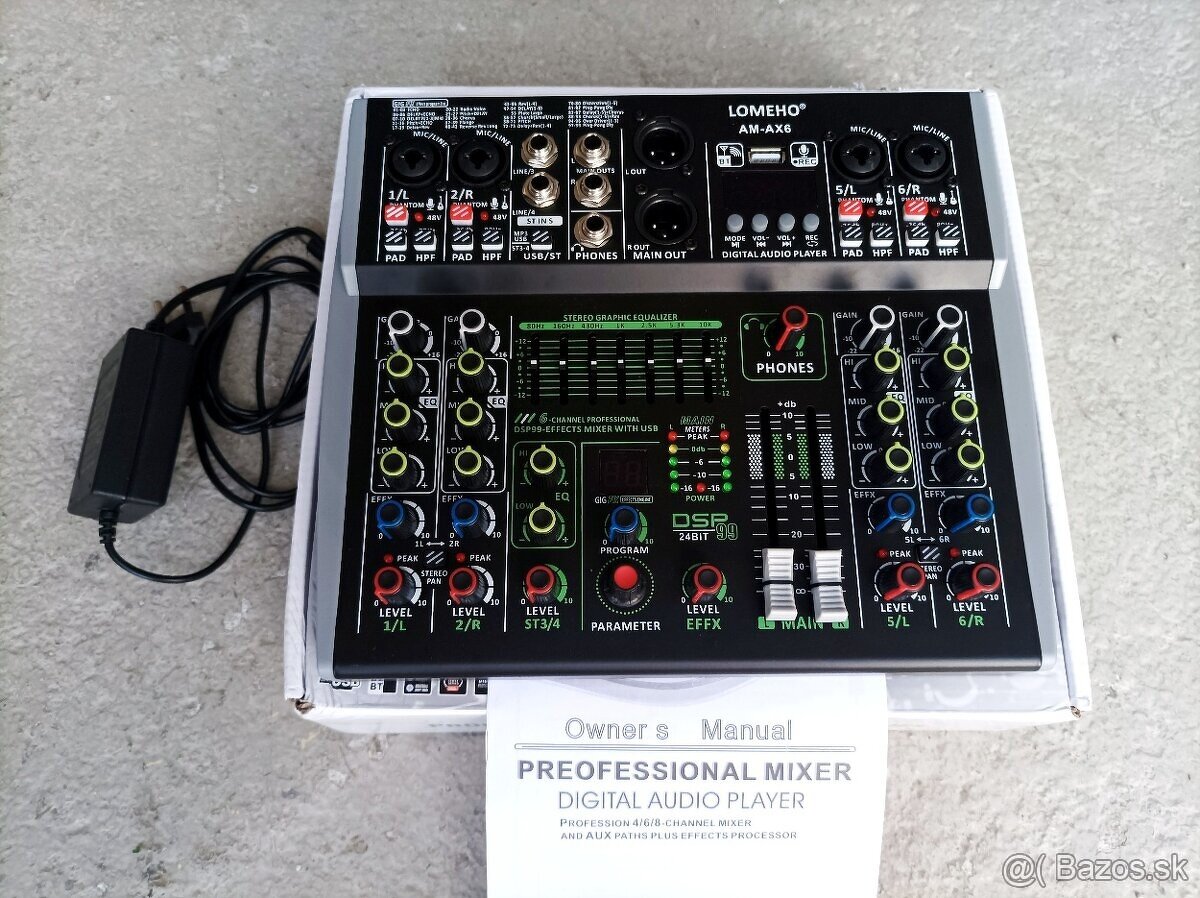 Predám nový mixpult, 4x vstup na mikrofón (Canon/Jack), jeden stereo vstup, USB vstup, nahrávanie na kľúč, bluetooth pripojenie. Ekvalizer 7 pásiem, 99 efektov na spev. Komplet nové, nerozbalené balenie vrátane adaptéra 80€. Možnosť pridať nový bezdrôtový mikrofón. Cena spolu 95€.