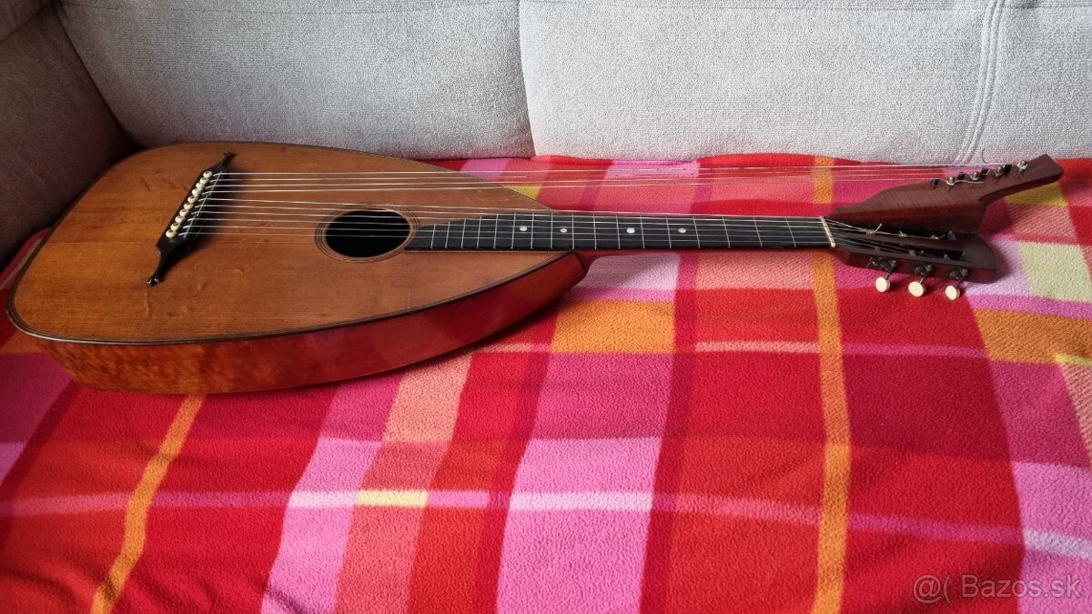 Nabízím desetistrunný celomasivní nástroj s pěkným komorním zvukem. Naladěn je jako kytara , čtyři basové struny jsou vždy o tón níže než nejbasovější struna kytarového ladění. Vzhledem k použitým materiálům a specifickému tvaru nástroje se jedná o ruční kvalitní výrobu. Tvarem připomíná loutnu, ale korpus není tak oblý a vypouklý, takže se i při hraní dobře drží. Velikostně je také příjemný - celková délka 100cm; délka bez nástavce pro bas. struny 91cm; menzura 60cm. Šíře korpusu 32,5cm; délka k. 50cm a hloubka k. 11cm. Nultý pražec 46mm.