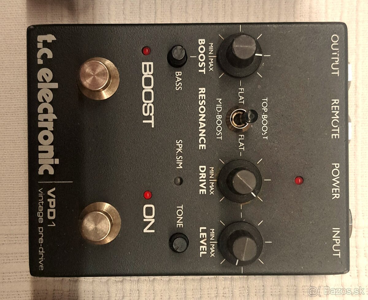 Predám tc Vintage Pre drive. Preamp, drive, boost (top/flat/mid), speaker sim (ten funguje aj pri vypnutom efekte). Ešte dánska kvalita. 9V.
