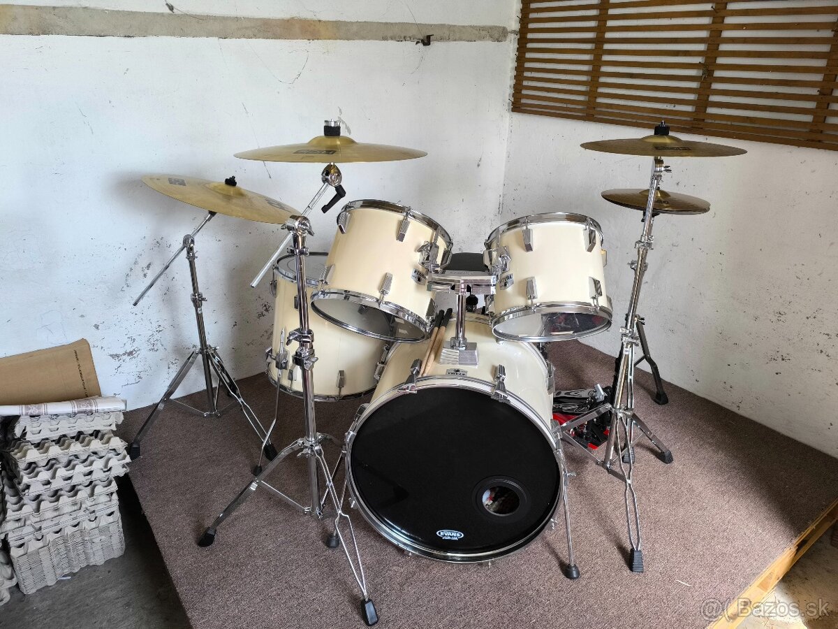 Predám akustickú súpravu bicích, korpusy Tama Rockstar, činely Mainl, stojany Milenium.