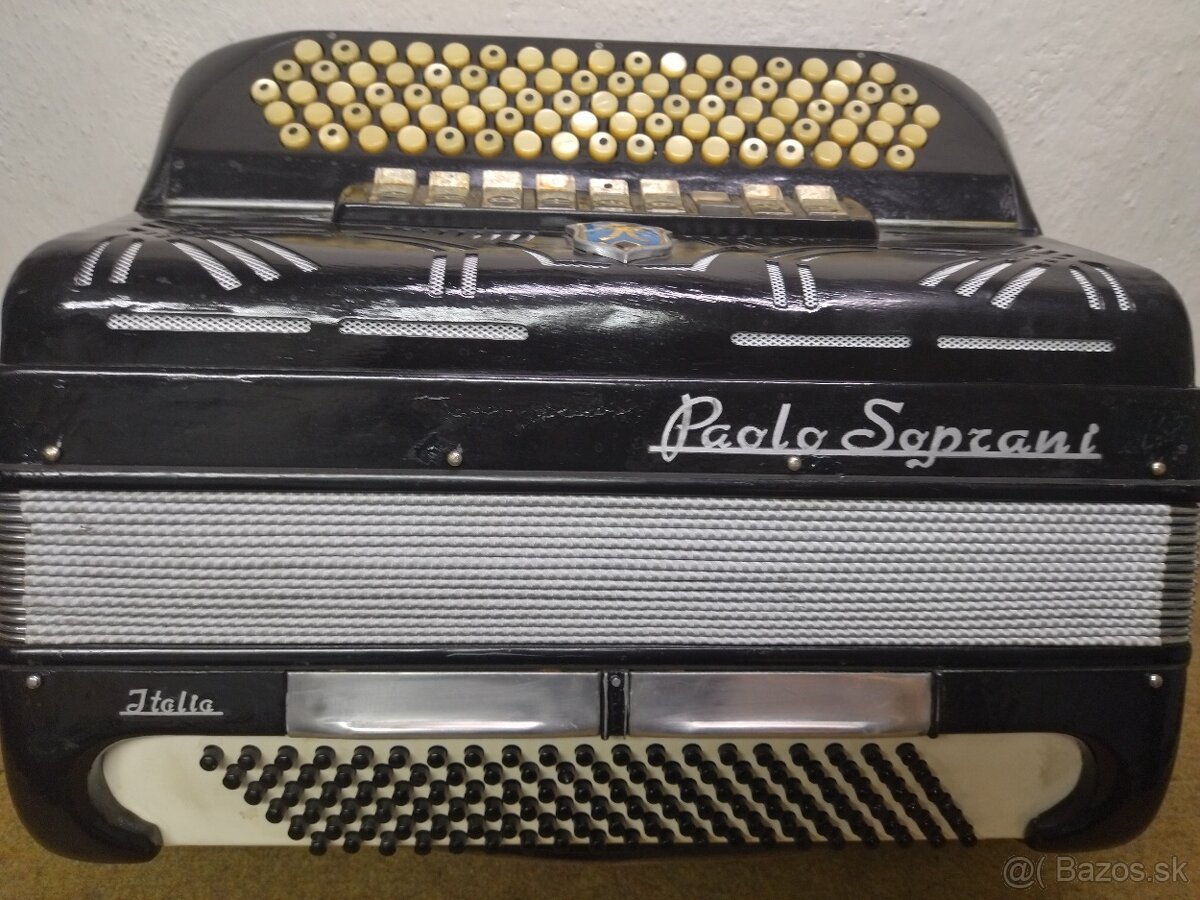 chromatika,PauloSoprani,B griff. Harmonika je 4 hlasá a basová strana 5 hlas.✅Kvalitná mechanika a krásny mohutný zvuk, má dvojité tremolo,váha 11,2 kg Akordeón je na svoj vek v dobrom stave + popruhy a kufor zdarma.💖Opravím aj Váš akordeón,harmoniku,heligonku.Na SMS neodpovedám.Ponuka platí do zmazania inzerátu.