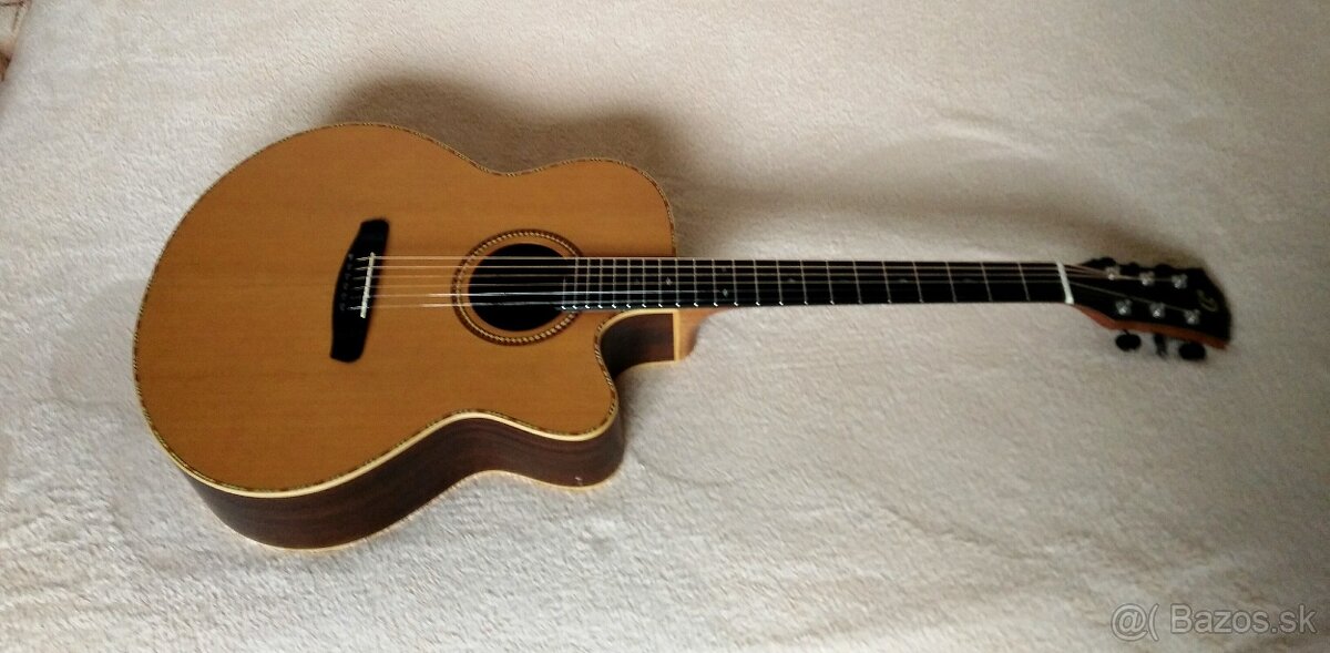 Predam ručne robenu celomasivnu gitaru Dowina Chardonnay JC /Jumbo/.Ma krasny silny vyvaženy zvuk a vyborne ladenie.Je vyrobena zakladatelom Dowiny majstrom Marinovom na zakazku v r.2007 / na vnutornom rebre signovana SPM /, na svoj vek je zachovala s malými znamkami použivania od bežneho hrania.