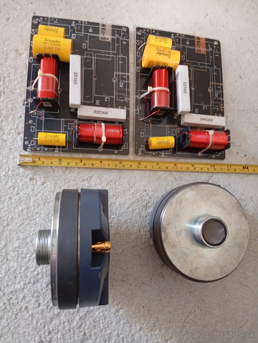 Predám dvojpásmové výhybky (používané v systémoch Monacor), stav nových. Výškové reproduktory - drivery, výkon 100/200W, 8ohm, 110db.