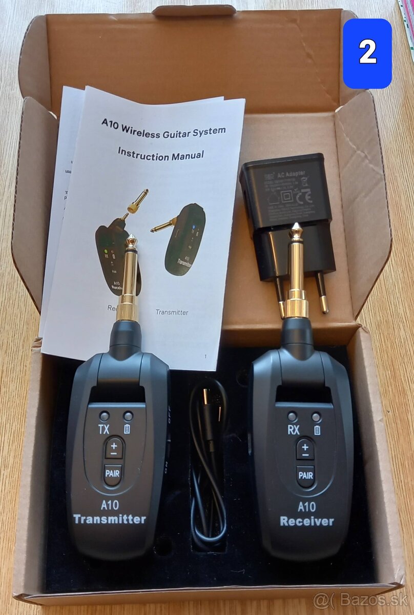 Dobrý deň, predám kompletný UHF WIRELESS GUITAR SYSTEM - vysielačku na gitaru + prijímač + nabíjačka = zdroj - adaptér + dvojitý nabíjací káblik + 2x pozlátené redukcie JACK.