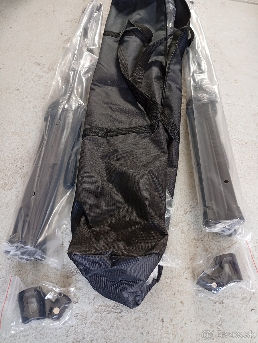 Predám set: 2x nový stojan na mikrofón, čierny, oceľový, šibenica, 2x držiak na mikrofón, prepravné púzdro na stojany.