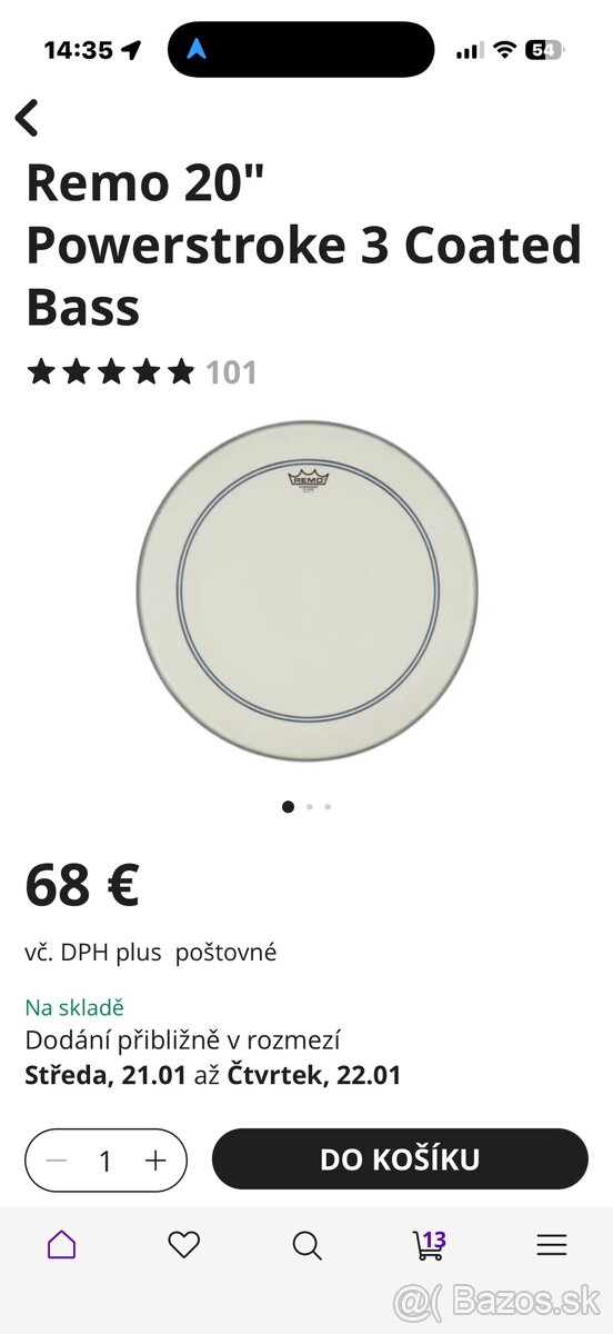 Predám blanu REMO Powerstroke 3 Coated na 20”basový bubon dobrý stav +terčik na nej