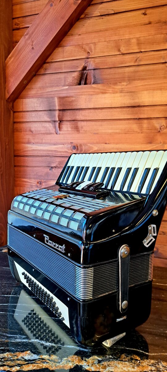Harmonika (akordeón) - [8.2. 2026]Predám harmoniku Parrot 96 basovú plne funkčnú. Má nejaké známky použitia